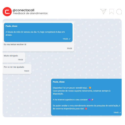 Atendimento humanizado que aumenta a satisfação e a retenção dos seus assinantes.